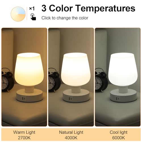 Night Stand Lamp with Plug: This white touch table lamp is equipped with a plug, modern and elegant appearance, high-quality lampshade made of milky white glass, will not fade, durable and easy to maintain.