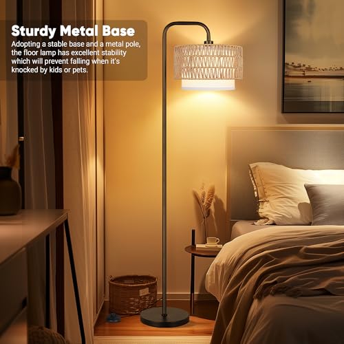 Stylish Decor : Floor lamp comes with 2 removable lampshades, a 100% hand-woven rattan shade and a fabric linen shade. Its farmhouse and contemporary design effortlessly complements various decor styles, adding a touch of sophistication to your space. The 2 in 1 rattan & fabric shades design not only provide exceptional lighting, but it also serves as a stylish centerpiece in any room, whether you place it in living room bedroom office or any other area, it'll create a comfortable atmosphere.