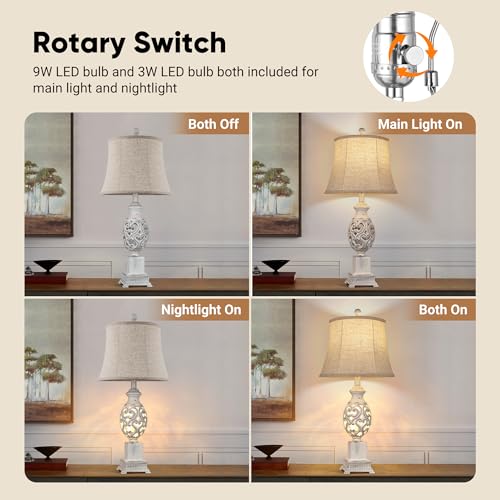 Eye-caring farmhouse lamps: the linen fabric lamp shade makes the glow softer and protects your eyes. Suitable for reading or working