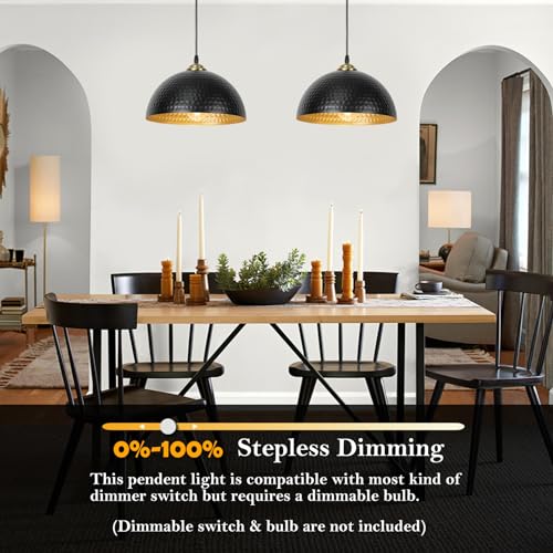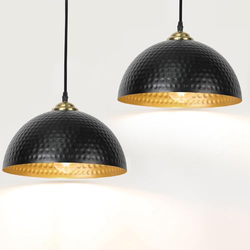?Industrial Kitchen Light Fixtures?- Qingmiao kitchen island lighting with height adjustable cord, black hammered metal dome shade and vintage gold inner. Combined with retro and industrial style, Not only a pendant lamp but also a guest room/ kitchen decoration. Never out of date and easily fits any style.