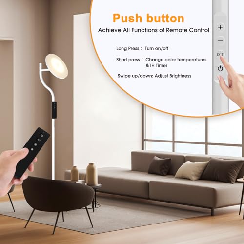 Smart Control Floor Lamp; The remote control can be magnetized onto the lamp and easily use it without leaving the current position within 8 meters range or 26.2 feet; Add touch control on top of the light pole, just in case you lose the remote