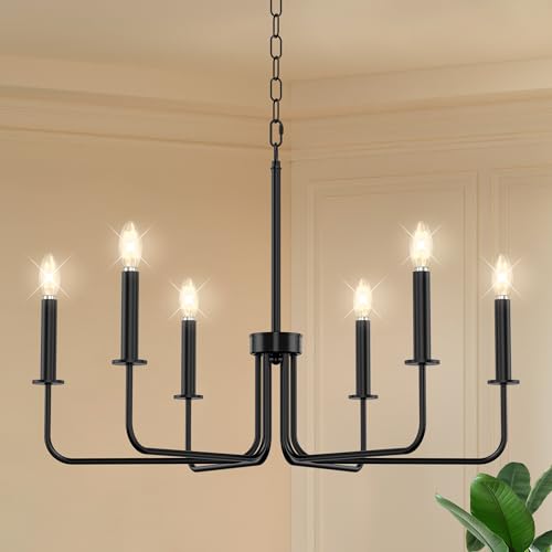 Farmhouse Chandelier with Classic Candle Design?Featuring a traditional 6-light farmhouse chandelier silhouette with graceful candle-style arms, this pendant light instantly enhances any dining room, kitchen island, or foyer with timeless charm and warm ambiance.