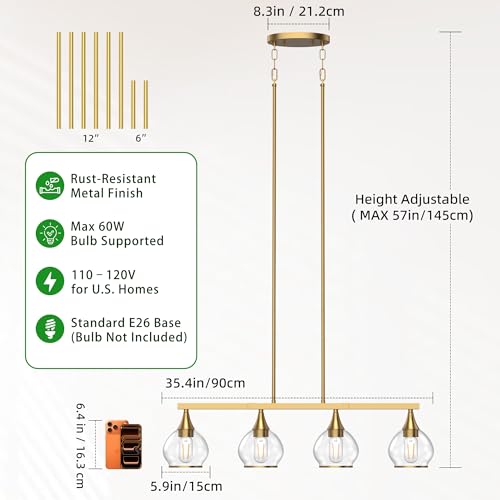 Clear Glass Globe Shades for Bright Lighting?Transparent glass shades diffuse light evenly and reduce glare. The gold finish complements both modern and farmhouse interiors, adding warmth and sophistication to any space.