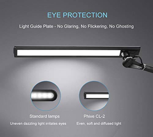 ?Eye Protecting & Energy Saving?The 13.6 inch long rotatable lamp head provides you with sufficient brightness to illuminate the whole desktop while protecting your eyes from flicker and glare. LED beads consume less energy than traditional incandescent lamps, energy-saving and cost-effective. Ideal desk lamp for office workers, designers, accountants, painters, and others who need to use desk lamps for a long time.