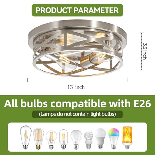 Recommended Bulbs -This ceiling lighting fixture requires 3 x E26 base bulbs (Max 60W). Compatible with LED bulbs, Incandescent or CFL bulbs. Easy installation, just screw the E26 bulbs you desired into the ceiling mount.(Bulbs NOT included)