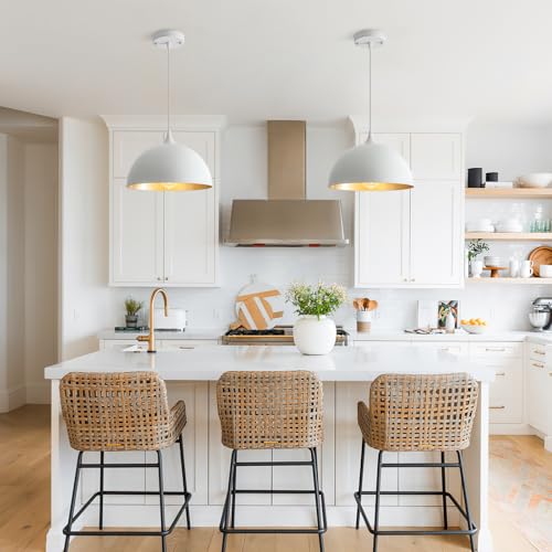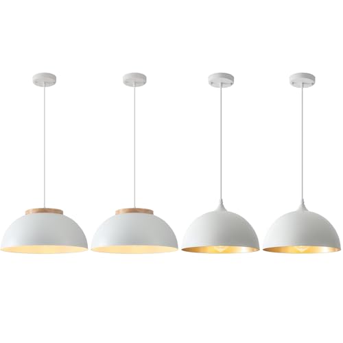 [Industrial & Retro Design]-This pendant lights features a retro-style dome shade in a two-tone finish (white and gold), a design that creates a stark contrast.The outer paint is not easy to fall off and easy to clean