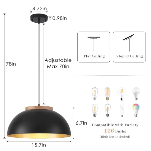 Adjustable Height: PINDODO black pendant lighting fixtures measures 15.7"W × 6.7"H and includes a 70-inch adjustable cord, allowing you to customize the height for flat, vaulted, or sloped ceilings. Whether hanging as pendant lights over kitchen island, above the dining table, or in the foyer, the flexible design fits seamlessly into any modern or rustic home layout.