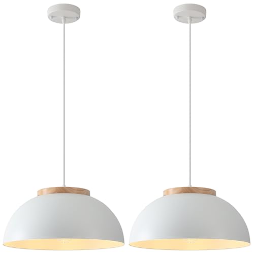 Modern & Farmhouse Style: PINDODO large pendant lights features a white finish with a solid wood cap, blending modern and farmhouse aesthetics. Industrial pendant lights is made of high standard metal material,it resists rust and fading, ,Makes durable and easy to clean,specially designed for lasting performance
