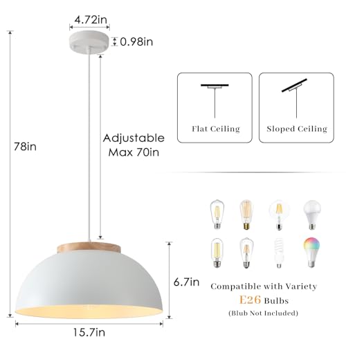 Adjustable Height Pendant Light: The lampshade measures 15.7"W x 6.7"H, with a 70-inch maximum hanging wire length. Suitable for sloped and flat ceilings to meet your space needs.Includes all mounting hardware and clear instructions for quick setup