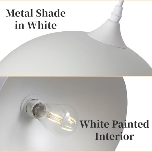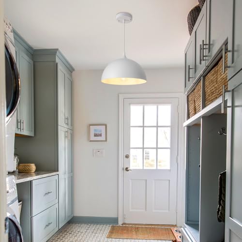 ?Industrial & Farmhouse Style? Featuring a classic dome-shaped shade, white pendant light showcases a smooth white finish inside and out. High-temperature baking paint ensures lasting color that resists peeling and allows for effortless cleaning. Its clean, minimalist design integrates easily with farmhouse, industrial, modern, and transitional interiors