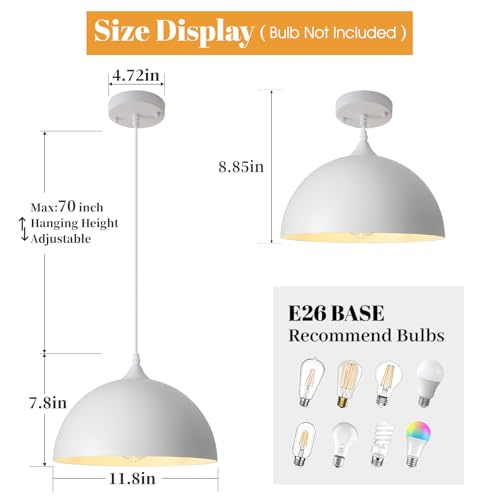 ?Adjustable Length for Flexible Installation? Equipped with an 11.8-inch diameter dome and a 70-inch adjustable hanging cord, height adjustments from 8.8 to 70 inches are easily achieved. Whether installed on flat or sloped ceilings, pendant light fixtures adapt seamlessly to a variety of spaces and ceiling types