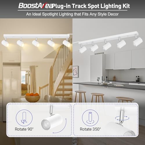 Modern Track Light Fixture?Boosteare 5 light track lighting is made of sturdy metal matte black finish, which is anti-rust, super easy to clean, simple but sleek. Ideal accent lighting for indoors as ceiling light, kitchen light, bathroom vanity lighting, bedroom bedside light, pendant track lighting, living room light, cabinet light, basement light, wall sconces, exhibition light, hallway light, picture wall light, bar light, coffee shop light