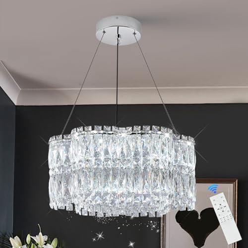Chrome Dimmable Crystal Chandelier : POEMOON considers the practicalities of LED crystal lighting, setting up some regular basis for the remote functions. There is a button of night light feature on the remote, you can turn on the mode of small night lamp for creating a relaxing bedtime atmosphere when you are getting ready to sleep in the bedroom or put your baby in a sweet dream. There is also a 30/60 minute timer setting button in case you forget to turn off the lights in a hurry, you can turn them off when you set them in advance