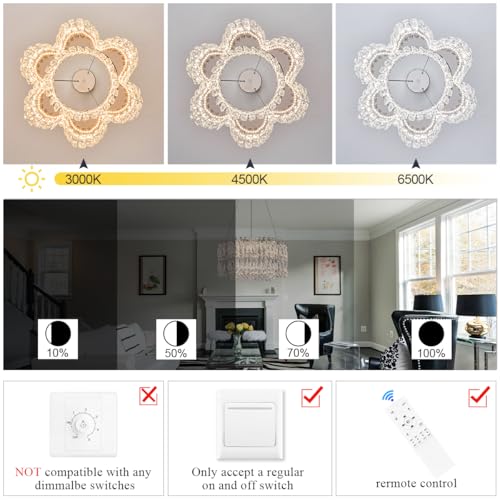 LED Light Source with Remote Control : This entryway light fixture for foyer chrome has a remote control to support color temperature and brightness adjustment. Therefore, you can change the light color like Warm (3000K) - Neutral (4500K) - Cool(6500K) or the light is dimmed by remote control, suitable for different atmospheres