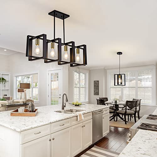 ?Dining Room Light Fixture ?: The black dining room light fixtures over table is made of high quality black metal and a rectangular solid wood , it is perfect for your kitchen, dining room or farmhouse styled space. the island chandelier style with retro and rich art for the design.