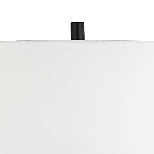 White finish faux marble base. Black finish pedestal. Cast resin construction. Clear acrylic accent.