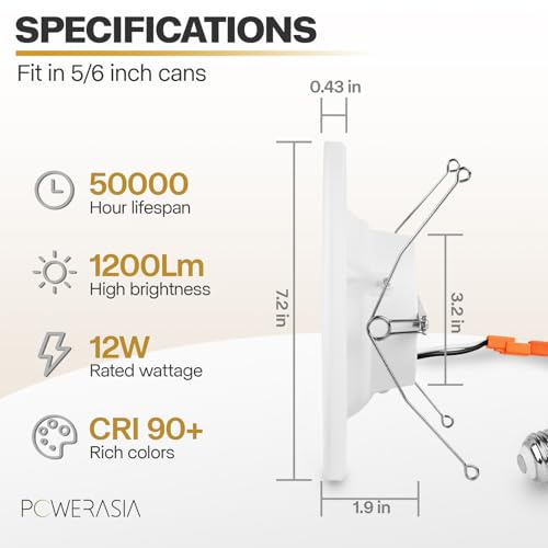 ?????High Brightness & Save Electricity? POWERASIA 90+CRI technology brings true color rendering to your house. The LED recessed lighting 6 inch retrofit use the new generation of LED chips with higher lumens and lower power. 1200LM 12 Watts, which equals to 75W incandescent lamp, saving you up to 84% in energy costs.