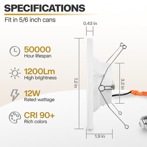 ?????High Brightness & Save Electricity? POWERASIA 90+CRI technology brings true color rendering to your house. The LED recessed lighting 6 inch retrofit use the new generation of LED chips with higher lumens and lower power. 1200LM 12 Watts, which equals to 75W incandescent lamp, saving you up to 84% in energy costs.