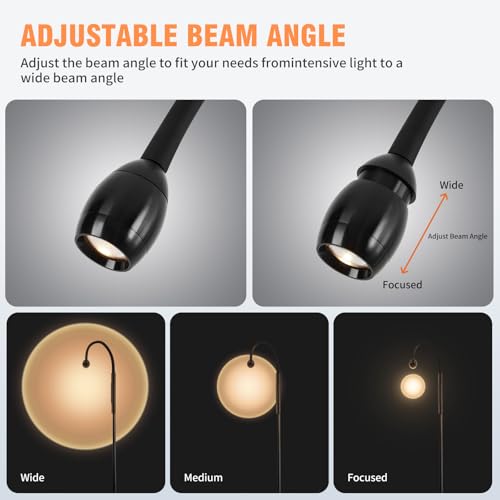 Full Range Beam - Adjust the light from a wide beam, medium beam, and focused beam. Ideal for concentrated lighting over a chair for reading or creating a small, focused beam for desk work. Easily maneuver the lamp in any direction with the durable metal gooseneck that supports 360 degrees of motion.