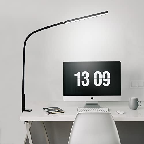 ?Longer Goosenese & Flexible Adjustment?25'' flexible gooseneck, 50% longer than similar task light, brings unlimited height adjustment, larger lighting coverage and multiple lighting angle choices, perfect clamp lamp for large workbench or use as monitor light.