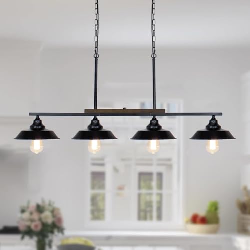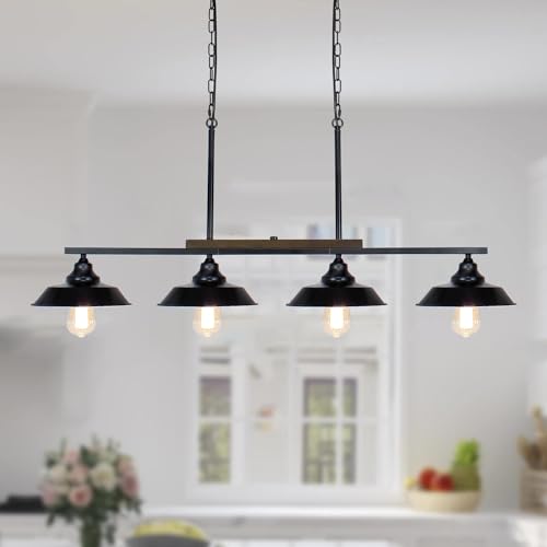 Wide Application: Fashioned after vintage-inspired lighting, this farmhouse kitchen island lighting is perfect for bringing a turn-of-the-century industrial vibe to any spaces of your room. This 4 black linear light fixture over table is ideal for covered patio, dining room, covered porch, hallway, entryway, bathroom, bedroom, kitchen, living room, office, stairway, or study ect.
