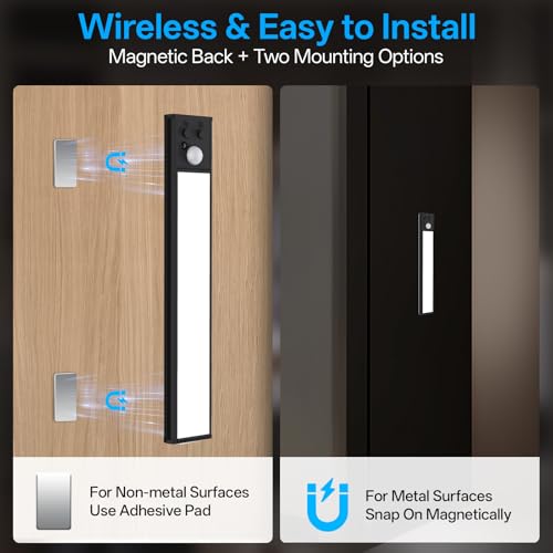 Magnetic Quick Installation:Built-in strong magnet, very easy to install, it can be directly attached to the surface of the refrigerator or other iron items, also can be paired with a sticky metal sheet to install it wherever you want. It is also easy to remove and install when charging. Perfect for kitchen, closet, cabinet, bedroom, stairs, hallway, bookshelf, basement and other scene lighting