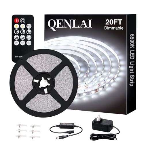 Plug-in Super Bright Led Strip Lights: 20ft white led light strip with 360 LEDs, 6500K color temperatures and 1440 lumens, can light up your bedroom, cabinets, mirrors, ceiling, stairway and any corners. No more charging every few days
