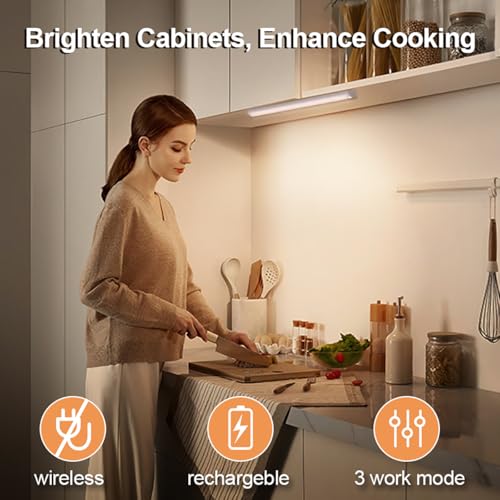 Always-on Mode & Daytime Sensing Mode: The under cabinet lighting wireless can be set always-on according to your tasks like reading, camping. Setting on daytime sensing mode(The light flashes 2 times),they auto-on when human motion is detected regardless of whether the light is sufficient