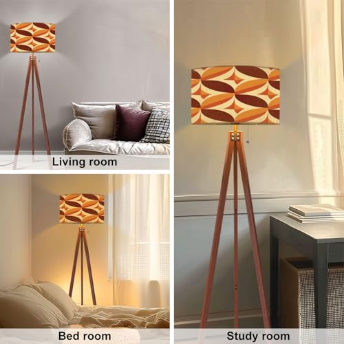 QFHOMTEOL Wood Tripod Floor Lamp 70s Retro Vintage Mid Century Modern Seamless Modern Standing Lamp Linen Lampshade Dimmable Tall Lamp Mid Century Floor Lamp for Living Room Bedroom