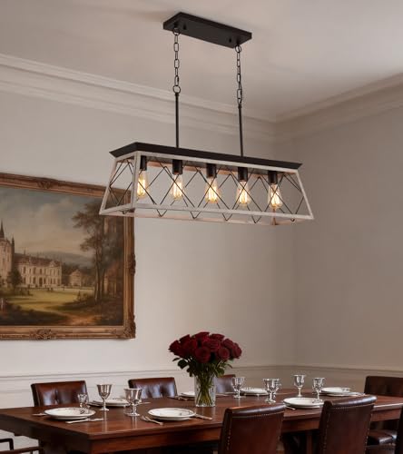 Widely used: This island chandelier is suitable for dining room,barn,kitchen island,bedroom,living room,balcony,porch,corridor,loft.craft room,entryway,billiard room,foyer,office,farmhouse,industrial country,over the cash desk,etc.the geometric chandelier will increase the classic ambiance in any space.