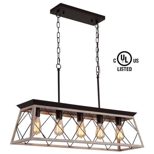 Lighting parameters:The square chandelier Length:31.5” Width:9.45” frame height:8.66” Max Height:67.34inches(included10.44 inches rods/47.24 inches chains) for perfect positioning, works on flat, sloped, slanted and vaulted ceiling.the farmhouse chandelier use 5 pcs 60-watt E26 Edison retro light bulbs (not included)E26 LED Edison bulbs are available in our store.