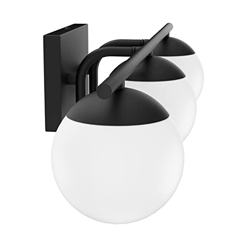3: DESIGN: Mid Century Modern Bathroom Vanity Light. Rich matte black-finished metal frame with premium milky white glass ball. Fitting in a variety of design styles ranging from mid-century modern to clean contemporary designs.