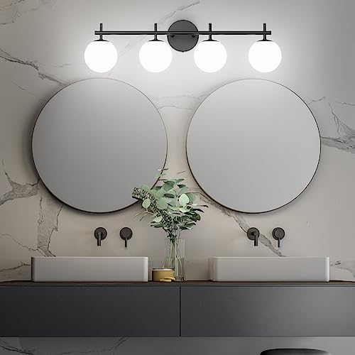 3: DESIGN: Mid Century Modern Black 4-Light Wall Sconces. High-quality Black paired and a milky white glass ball. Fitting in a variety of design styles ranging from mid-century modern to clean contemporary designs.