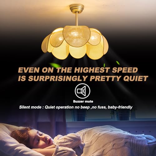 Ultra-Quiet Bedroom Cooling Solution This boho fandelier (25.5-inch diameter) delivers peaceful sleep with its 7 silent ABS blades operating under 35dB. The rattan ceiling fan with light casts a warm glow while circulating air, creating the perfect bedroom ceiling fan with lights experience for light sleepers and new parents.