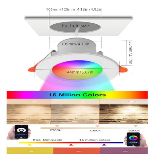Smart Voice + App Control: Smart Recessed Lighting compatible with Alexa for hands-free voice control to dim,turn on/off ,change the colors ect. This smart LED downlights also allow for intelligent control via app,equipped with bluetooth 5.0 chip to realize function. You can easily control up to 126 recessed lights individually or simultaneously within 30 meters. Just using bluetooth and access the APP,No registration required, without wifi.No Hub required