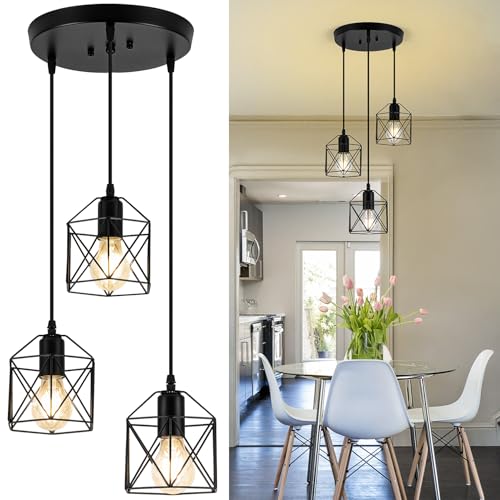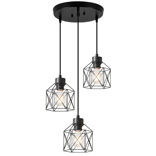 ?Freely Adjust the Cord Height?These industrial hanging pendant light with 3 adjustable cord, to fit your ceiling height needs by unscrewing the 3 tightening caps. combining with industrial style and vintage design, this kitchen pendant light fixtures can easily blend with almost any decor and can captivate your guests' eyes and an inviting ambiance as well, this farmhouse kitchen pendant light fixtures also a great choice for decorating the corners of your home.