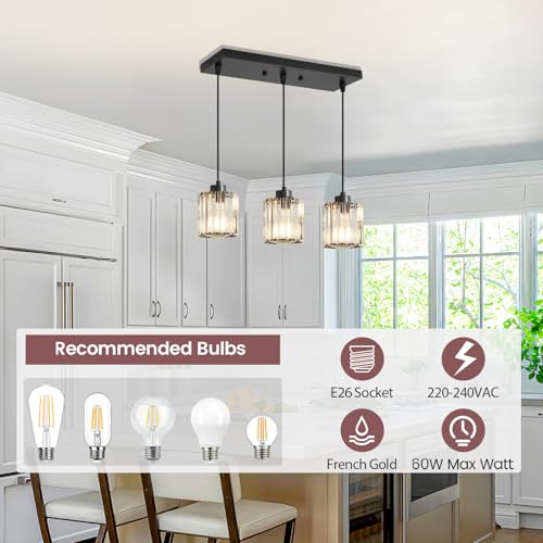 [Hanging Light Fixture with E26 Base] These pendant light fixtures are compatible with various E26 base light bulbs, offering a wide range of options for bulb styles and colors with their 4.72x4.72 inch light fixture shades. Each island light supports three light bulbs, up to 60W each, and can be used with a dimmer for personalized brightness control. (Light bulbs not included)