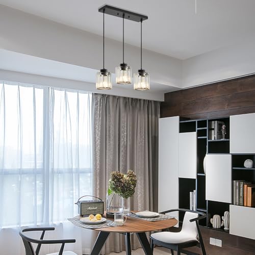 [Modern Dining Room Light Fixture] The ROCUNSI pendant lights feature a sleek black finish and durable clear glass lampshades, exuding a stylish and contemporary aesthetic that enhances any space's ambiance. Each pendant light is adjustable, allowing you to customize the cord length to 39.5 inches, adapting to your preferences and spatial needs.