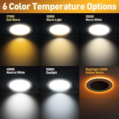 Advanced, Energy-Efficient Lighting: The 6 inch version lights use 12W in downlight mode and 3W in night mode, effectively replacing 110W and 25W incandescent bulbs. They deliver a bright 1100 lumens with an 80+ CRI for vivid color rendering. Enjoy energy-efficient, dimmable lighting adjustable from 5% to 100% to suit any time of day.