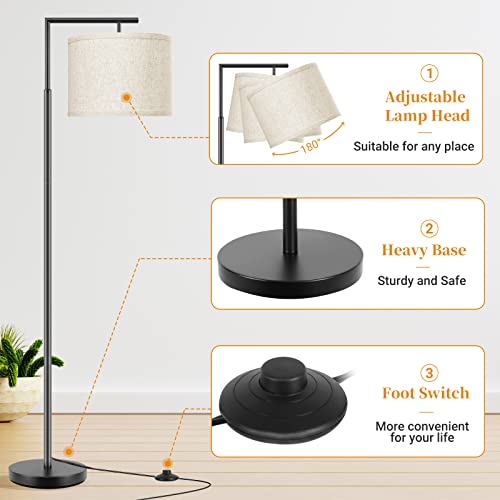 ?????Safe Base & Convenient Foot Switch?: The modern floor lamp is made of high-quality metal which is stable and sturdy, weighted metal base prevents tipping, and the convenient foot switch allows you to easily switch the black floor lamp on/off with your foot without bending down. The sturdy design of living room lamp makes it wobble-free and safe to have around children and pets. The 6.9ft long cable allows you to place the living room floor lamp anywhere you want.