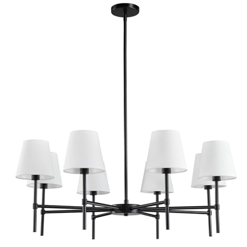 High Quality Fabric Shade: This chandeliers for dining room has well-rubbed and anti-rust matte black finish in smooth texture will surely avoid any paint peeling problem, and will do better on the maintenance and preservation of the lamp body, enhance the timeless elegance. And the white fabric shade will spread evenly, relaxing and soft lighting, protecting your eyes and creating comfortable ambience
