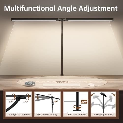 ?Ultra-Wide Lighting & Easy Installation? Designed with dual lamp heads, this desk lamp extends up to 31.5 inches, perfectly covering desks up to 71 inches wide. It provides bright, even lighting without dark spots. The easy-to-install metal clamp securely attaches to tabletops up to 2 inches thick, freeing up valuable desk space.