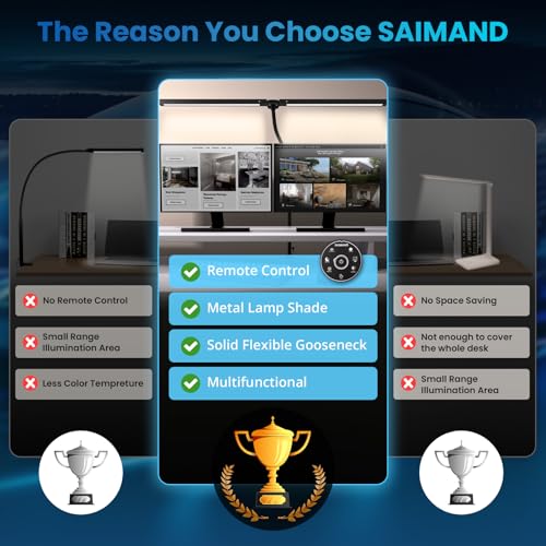 ?Eye-Friendly & Versatile Applications? The SAIMAND desk lamp is designed to reduce eye strain with its glare-free, flicker-free, and blue light-free illumination. It's perfect for a variety of settings, including large workstations, dual-monitor setups, drafting tables, and more, providing comfortable lighting for extended work or study sessions.