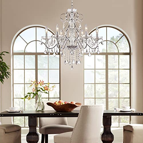 Fixture Dimension for this crystal chandelier light is Height 23 inches x Diameter 24 inches. 6 x E12 Bulbs are Required (NOT Included in the package),Max 40W per bulb and Max Height of adjustable chain is 60 inch. And this chandelier is also compatible with LED bulbs.
