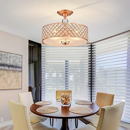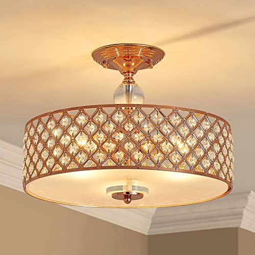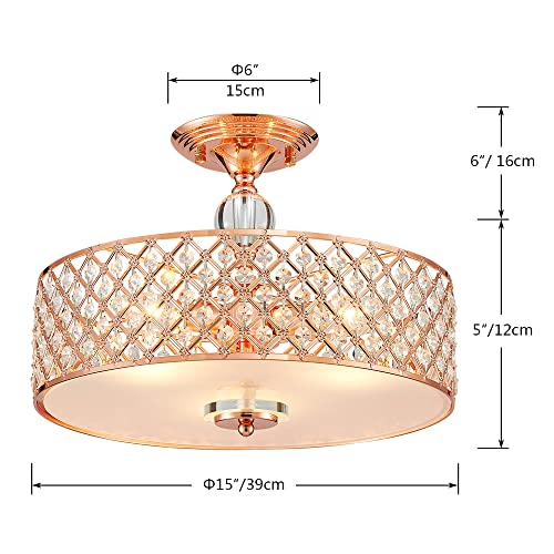 Add some elegance to your home with this Saint Mossi K9 Crystal modern semi flush mount ceiling light fixtures. This dynamic lighting element features generous rows of cascading 100% real crystals to catch the light. Cascading crystals reflect light beams in a manner that makes it appear as if it has multiple light sources. The unique design makes it a conversation piece that works for any room. This elegant flush mount pendant ceiling light features a rose gold finish. Combined with the clear crystals, it stunningly glistens. Dress up your entryway, your dining room or even your bathroom with this classy fixture. The crystals deflect the light, creating a multi-directional glow.
