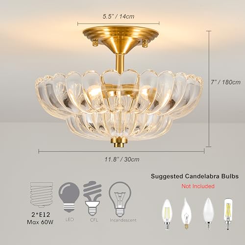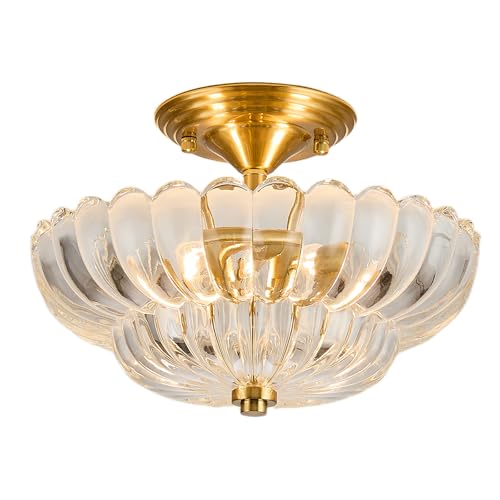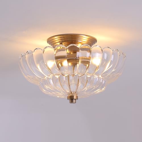 ? Classic Design ?: This semi-flush mount crafted from brushed brass finished metal and high-end sophisticated thicked clear glass, and its flowing glass shade gently disperses ambient light. its gleaming accents make this flush mount blend with glam and coastal decor styles.