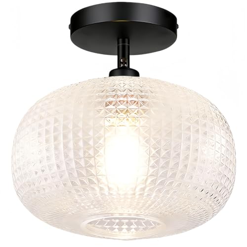 ?????????Semi Flush Mount Ceiling Light Fixture?Retro and modern style: industrial ceiling light fixtures.Color: black metal base& globe glass shade. The ceiling light fixture is beautiful, warm and unique, creating a romantic atmosphere in your home.The ceiling fixture can be changing the different look and atmosphere by changing the bulb.The semi flush mount ceiling fixture is a perfect choice to decorate your house.