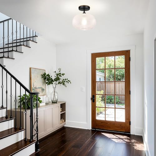 ?????????Ideal Applications?The black flush mount ceiling light are perfect for living room, hallways, Porch,bedrooms, foyer, kitchen, mudroom, stairwell, closet, kids room, dining room, craft room, etc. Also ideal for commercial areas, such as cafes, hotels, and restaurants and ect. You will get a lot of compliments on this indoor fixture ceiling light.