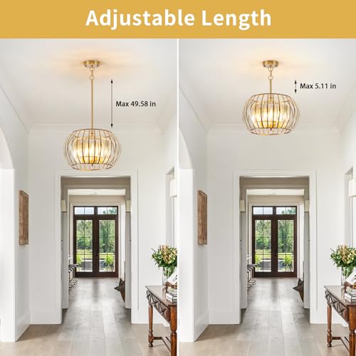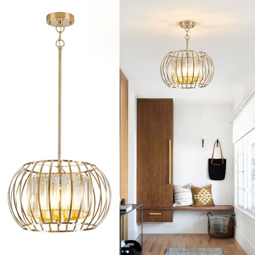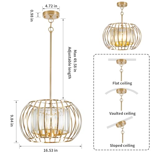 ?Widely Use? The gold kitchen chandelier has 3 combinations (cage only, crystal only, cage crystal) to bring different styles to your home. And the canopy swivel design allows it to be fixed on flat, sloped, vaulted ceiling, perfect for kitchen island, entryway, hallway, living room, bedroom, etc.