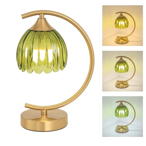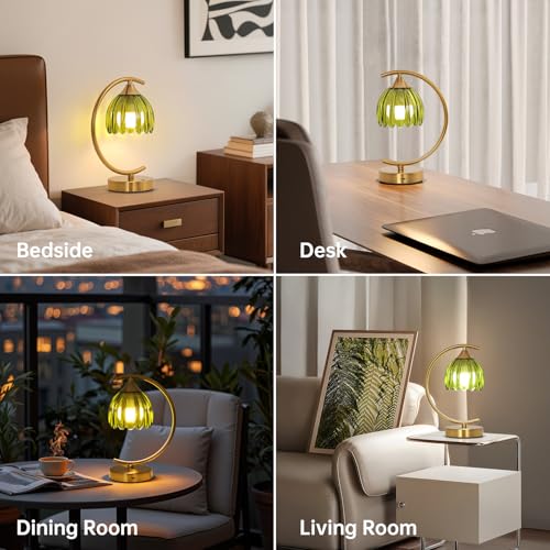 ???? ?Tulip Shade & Portability?:The green glass tulip-shaped shade softens glare while adding chic style to desks/nightstands. Compact and lightweight (1.32 lbs), it fits snugly in small spaces without sacrificing style. The handle make it perfect for indoor/outdoor use—take it from your bedside table to the patio effortlessly.The handle makes it perfect for carrying on the move and easy to pick up from the bedroom to the living room.